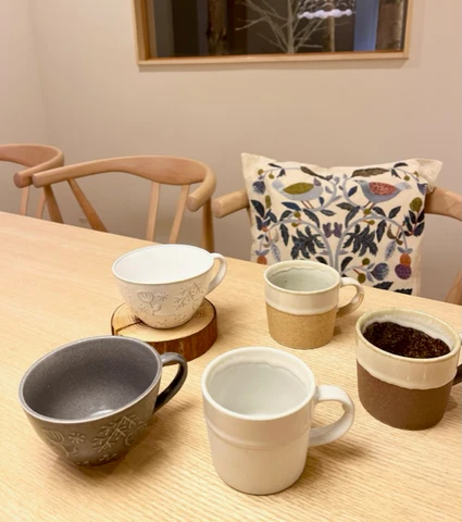 ●最近は、カラフルだったり、アニマル多めなマイスターでしたが、久しぶりに、落ち着いた雰囲気のマグカップの入荷です!右側のマグは、程よいサイズ感が良いです!